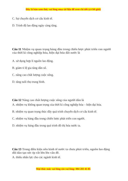Câu 12 Nâng cao chất lượng cuộc sống của người dân là