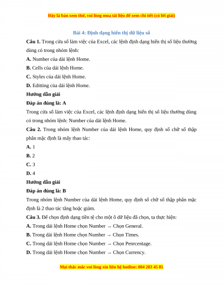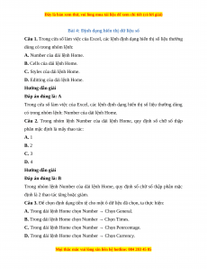 Trắc nghiệm Bài 4: Định dạng hiển thị dữ liệu số