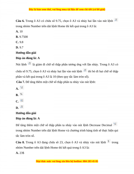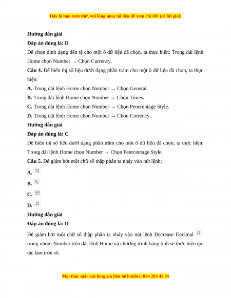 Câu 5. Để giảm bớt một chữ số thập phân ta nháy vào nút lệnh: A. B. C. D. Hướng dẫn giải