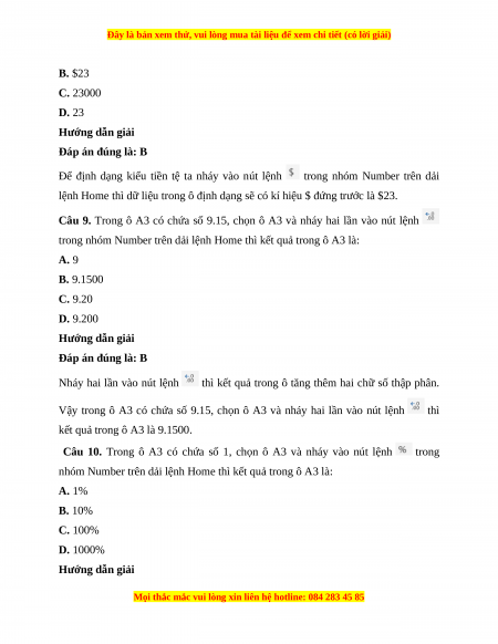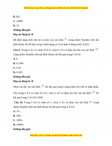 trong nhóm Number trên dải lệnh Home thì kết quả trong ô A3 là: A. 9 B. 9.1500 C. 9.20 D. 9.200 Hướng dẫn giải