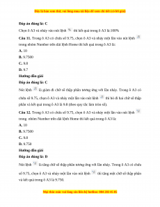 trong nhóm Number trên dải lệnh Home thì kết quả trong ô A3 là: A. 10 B. 9.7500 C. 9.8 D. 9.7 Hướng dẫn giải