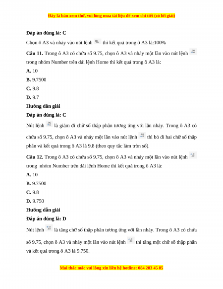Câu 7. Để tăng thêm một chữ số thập phân ta nháy vào nút lệnh: A. B. C. D. Hướng dẫn giải