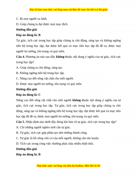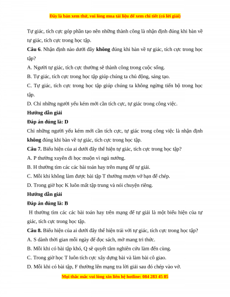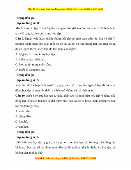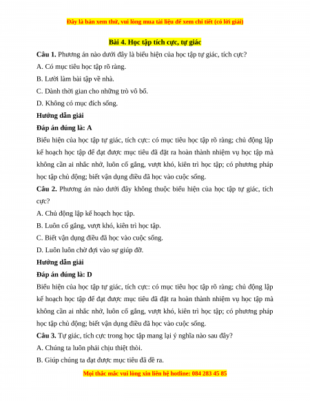 Câu 1. Phương án nào dưới đây là biểu hiện của học tập tự giác, tích cực?