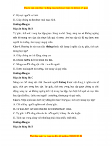 Câu 4. Phương án nào sau đây không thuộc nội dung ý nghĩa của tự giác, tích cực trong học tập?