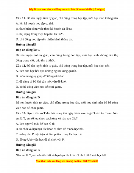 Câu 12. Để rèn luyện tính tự giác, chủ động trong học tập, mỗi học sinh nên