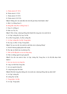 Câu 1. Những nền văn minh đầu tiên trên thế giới được hình thành vào khoảng thời gian nào? A. Thiên niên kỉ IV TCN. B. Thiên niên kỉ V TCN C. Thiên niên kỉ VI TCN D. Thiên niên kỉ VII TCN.
