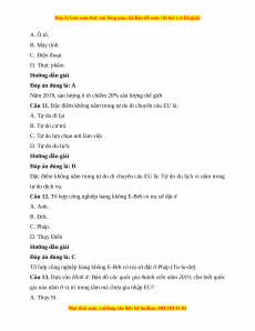 Câu 9. Hãng máy bay nào dưới đây là của EU?