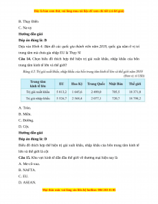 Câu 5. Một trong những trung tâm thương mai – tài chính lớn nhất thế giới hiện nay là A. In-đô-nê-xi-a. B. Thái Lan. C. Việt Nam. D. Liên minh châu Âu. Hướng dẫn giải Đáp án đúng là: A