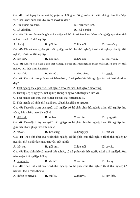 Câu 9: Loại hình thất nghiệp gắn liền với sự biến động cơ cấu kinh tế và sự thay đổi của công nghệ