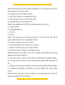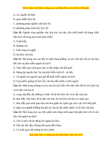 ả tồn và phát huy giá tr di ị s n ả ? A. K t ế quả nghiên c u ứ c a ủ Sử h c ọ là cơ s ở khoa h c ọ đ ể xác đ nh ị giá tr ịc a ủ di s n. ả B. S h ử c t ọ ái hi n đ ệ y đ ầ m ủ i ọ giá tr c ị a ủ di s n ả văn hóa và di s n t ả hiên nhiên. C. Sử h c ọ giúp cho giá trị c a ủ di s n ả văn hóa và di s n ả thiên nhiên luôn b n ề v ng. ữ D. Các phư ng ơ pháp nghiên c u S ứ h ử c ọ luôn ph c ụ d ng l ự i ạ nguyên v n di ẹ s n. ả Câu 3. N i