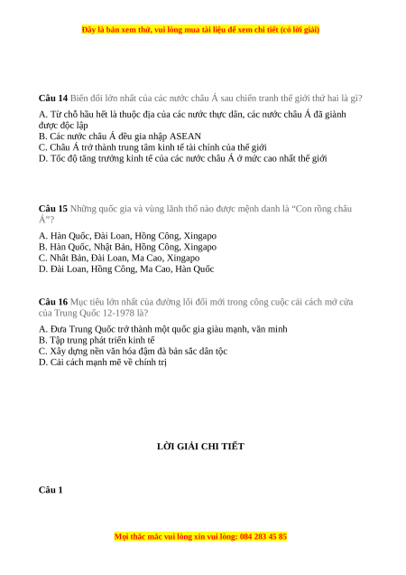 Câu 14 Biến đổi lớn nhất của các nước châu Á sau chiến tranh thế giới thứ hai là gì?