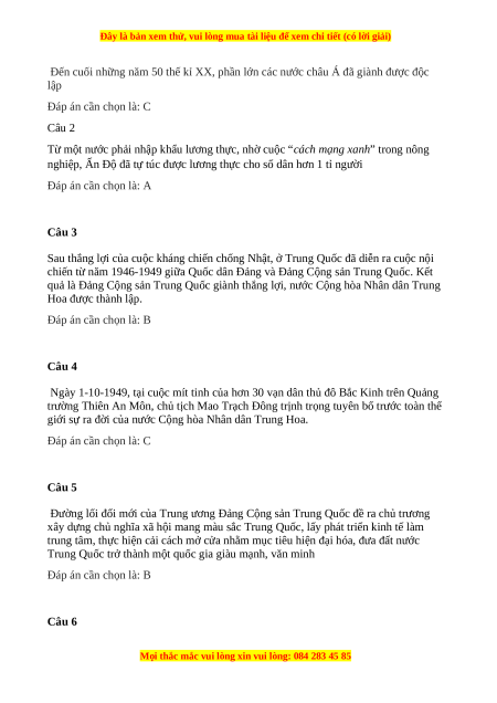 Câu 1 Phần lớn các nước châu Á đã giành được độc lập ở khoảng thời gian nào sau