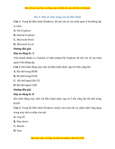 Câu 5. Khẳng định nào sau đây là sai khi nói về hệ điều hành?