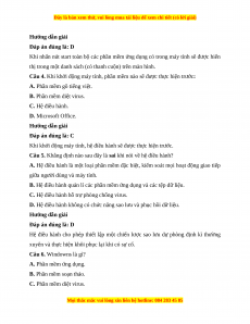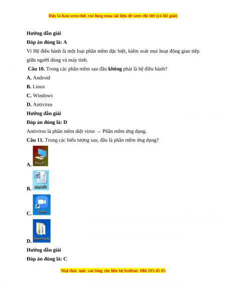 Câu 10. Trong các phần mềm sau đâu không phải là hệ điều hành? A. Android B. Linux C. Windows D. Antivirus Hướng dẫn giải
