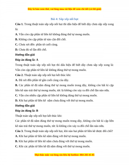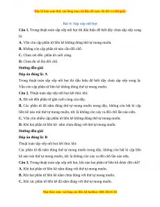 Câu 4. Khi nào thực hiện thuật toán sắp xếp nổi bọt chỉ cần một lượt so sánh các