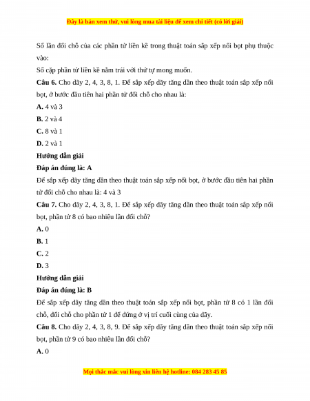 Câu 8. Cho dãy 2, 4, 3, 8, 9. Để sắp xếp dãy tăng dần theo thuật toán sắp xếp nổi