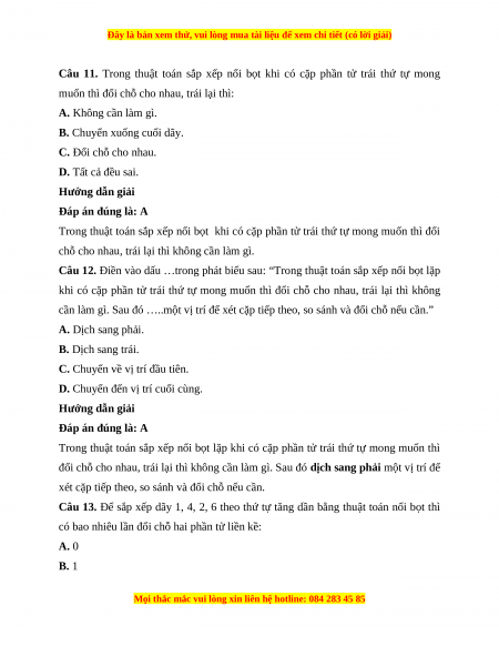 Câu 10. Trong thuật toán sắp xếp nổi bọt lặp khi có cặp phần tử trái thứ tự mong muốn thì: