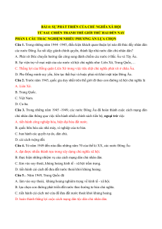 Câu 2. Trước năm 1945, quốc gia duy nhất trên thế giới đi theo con đường xã hội chủ nghĩa là A. Liên Xô. B. Trung Quốc. C. Việt Nam. D. Cu-ba.