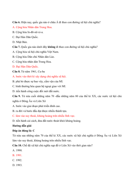 Câu 6. Hiện nay, quốc gia nào ở châu Á đi theo con đường xã hội chủ nghĩa?