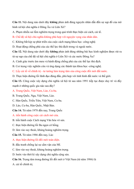 Câu 13. Công cuộc xây dựng chủ nghĩa xã hội từ sau năm 1991 tiếp tục được duy trì và đẩy