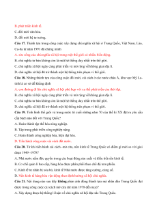 Câu 17. Thành tựu trong công cuộc xây dựng chủ nghĩa xã hội ở Trung Quốc, Việt Nam, Lào,