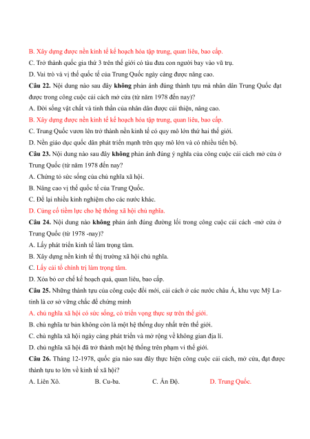 Câu 14. Từ năm 1978 đến nay, Trung Quốc