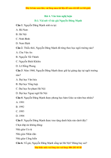 Câu 1. Nguyễn Đăng Mạnh sinh ra tại: A. Hà Nam B. Hà Nội C. Ninh Bình D. Nam Định