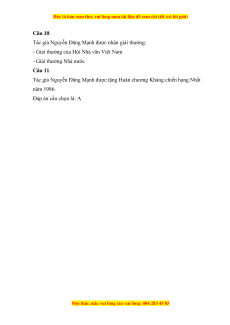Câu 10. Tác giả Nguyễn Đăng Mạnh được nhận giải thưởng nào dưới đây?