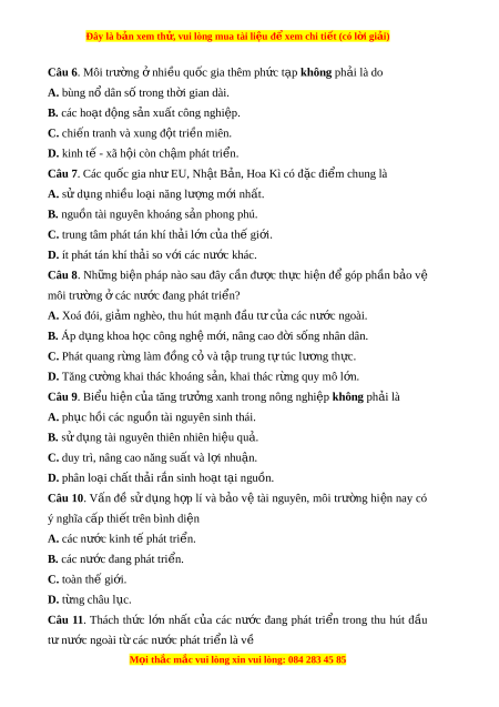 Đây là bản xem th , vu ử i lòng mua tài li u ệ đ xe ể m chi ti t (c ế ó l i ờ gi i ả ) Câu 6. Môi trư ng ờ nhi ở u qu ề ốc gia thêm ph c t ứ p ạ không ph i ả là do