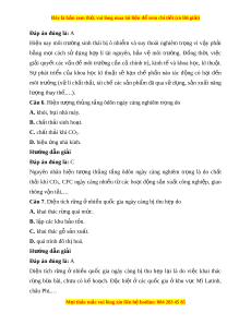 ễ và suy thoái nghiêm tr ng ọ vì v y ậ ph i ả b ng ằ m i ọ cách sử d ng ụ h p ợ lí tài nguyên, b o ả vệ môi trư ng. ờ Đ ng ồ th i ờ , vi c ệ gi i ả quy t ế các v n ấ đ m ề ôi trư ng ờ c n ầ c chí ả nh tr , ị kinh t ế và khoa h c, ọ kĩ thu t ậ . Sự phát tri n ể c a ủ khoa h c ọ kĩ thu t ậ sẽ h n ạ chế ph n ầ nào tác đ ng ộ có h i ạ đ n ế môi trư ng ờ (x l ử í ch t ấ th i ả , tái ch các ế s n ả ph m ẩ đã qua s d ử ng, ụ s n ả xu t ấ năng lư ng ợ thay th ,… ế ). Câu 6. Hi n t ệ ư ng t ợ h ng ủ t ng ôdôn ngày càng ầ nghiêm tr ng do ọ A. khói, b i ụ nhà máy. B. chất th i ả sinh ho t ạ . C. chất th i ả khí CO2. D. hiệu ng nhà kí ứ nh. Hư ng d ớ ẫn gi i ả Đáp án đúng là: C Nguyên nhân hi n ệ tư ng ợ th ng ủ t ng