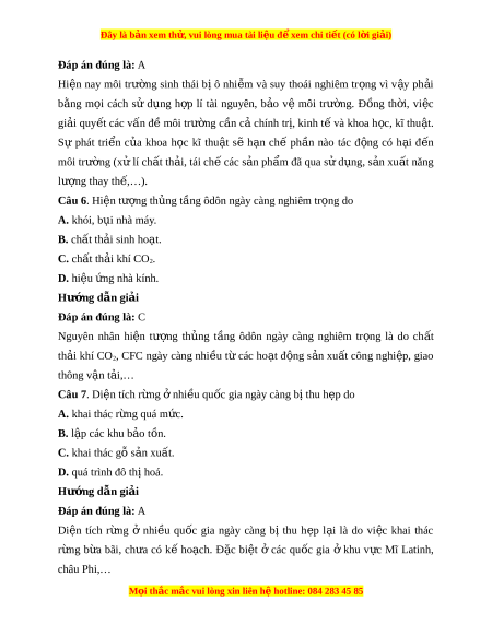 Đây là bản xem th , vu ử i lòng mua tài li u ệ đ xe ể m chi ti t (c ế ó l i ờ gi i ả ) Đáp án đúng là: A Hi n ệ nay môi trư ng ờ sinh thái b ịô nhi m