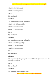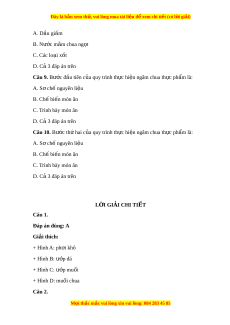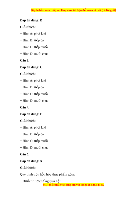 Đây là bản xem th , vu ử i lòng mua tài li u ệ đ xe ể m chi ti t ế (có l i ờ gi i ả ) Đáp án đúng: B Giải thích: + Hình A: ph i ơ khô + Hình B: ư p đá ớ + Hình C: ư p m ớ u i ố + Hình D: mu i ố chua Câu 3. Đáp án đúng: C Giải thích: + Hình A: ph i ơ khô + Hình B: ư p đá ớ + Hình C: ư p m ớ u i ố + Hình D: mu i ố chua Câu 4. Đáp án đúng: D Giải thích: + Hình A: ph i ơ khô + Hình B: ư p đá ớ + Hình C: ư p m ớ u i ố + Hình D: mu i ố chua Câu 5. Đáp án đúng: A Giải thích: Quy trình tr n h ộ n h ỗ p t ợ h c ph ự m ẩ g m ồ : + Bư c ớ 1: S ch ơ nguyên l ế i u. ệ M i