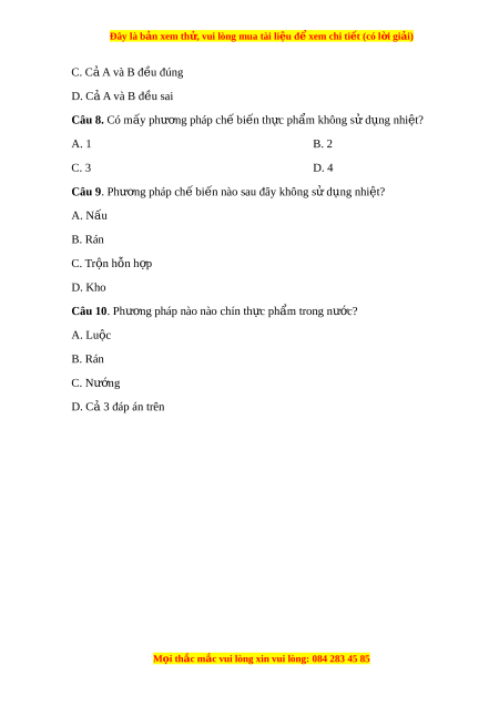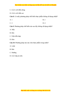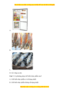 Đây là bản xem th , vu ử i lòng mua tài li u ệ đ xe ể m chi ti t ế (có l i ờ gi i ả ) A. B. C. D. Cả 3 đáp án trên Câu 7. Có phư ng ơ pháp ch bi ế n t ế h c ph ự m ẩ nào? A. Ch bi ế n ế th c ự ph m ẩ có s d ử ng nhi ụ t ệ B. Chế bi n t ế h c ph ự m ẩ không s d ử ng ụ nhi t ệ M i
