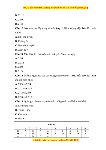 Đây là bản xem th , vu ử i lòng mua tài li u ệ đ xe ể m chi ti t ế (có l i ờ gi i ả ) B. 22/12. C. 23/9. D. 21/3 Câu 12. N i