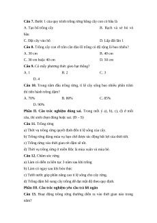 Câu 8. Trồng cây con rễ trần cần đào lỗ trồng có độ rộng là bao nhiêu? A. 30 cm B. 40 cm C. 30 cm hoặc 40 cm D. 50 cm