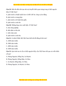 ư hùng Nguyên (kho ng 4000 năm ả trư c) ớ , Đ ng Đ ồ u ( ậ kho ng ả 3500 năm trư c) ớ , Gò Mun (kho ng ả 3000 năm trư c) ớ ”. A. Ở phư ng ơ Tây. B. Đồng Đ u. ậ C. Gò Mun. D. Phùng Nguyên. Câu 18: Nh ng d ữ ấu tích c a ng ủ ư i ờ tối c đ ổ ư c ợ tìm th y ấ khu v ở c ự nào c a ủ Vi t ệ Nam? A. Th m ẩ Hai, Th m ẩ Khuyên (L ng ạ S n