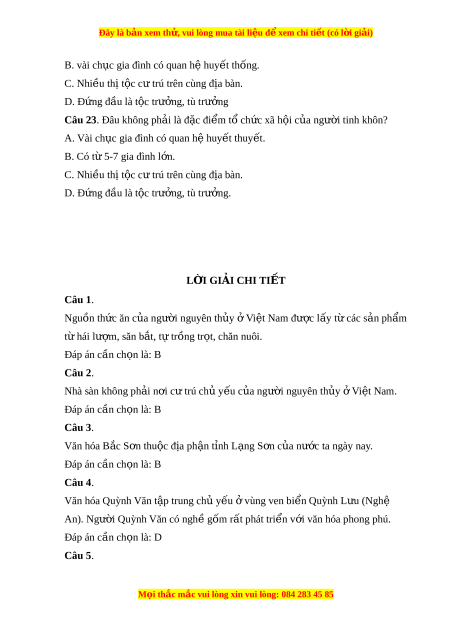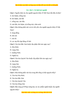 Đây là bản xem th , vu ử i lòng mua tài li u ệ đ xe ể m chi ti t ế (có l i ờ gi i ả ) B.2. Bài 5. Xã h i ộ loài ngư i ờ Câu 1. Nguồn th c ứ ăn c a ng ủ ư i ờ nguyên th y ủ ở Vi t ệ Nam b t ắ đ u t ầ ừ đâu? A. hái lư m ợ , tr ng t ồ r t ọ . B. hái lư m ợ , săn b t ắ C. trồng tr t ọ , săn b n. ắ D. săn b n, ắ hái lư m ợ , t t ự r ng t ồ r t ọ , chăn nuôi.