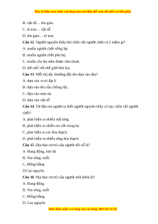 Câu 16. Địa bàn c t ư rú c a ng ủ ư i ờ tinh khôn là? A. Hang đ ng. ộ B. Ven sông, suối C. Đồng b ng. ằ D. Cao nguyên. M i
