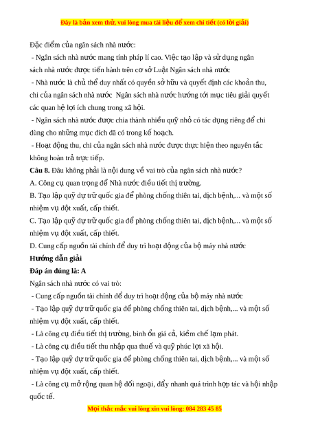 Đây là bản xem th , vu ử i lòng mua tài li u ệ đ xe ể m chi ti t ế (có l i ờ gi i ả ) Đặc đi m ể c a ủ ngân sách nhà nư c: ớ - Ngân sách nhà nư c
