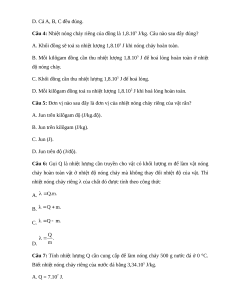 Câu 2: Nhiệt nóng chảy riêng của một chất là