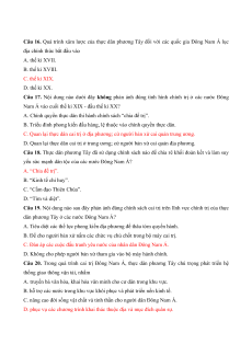 Câu 16. Quá trình xâm lược của thực dân phương Tây đối với các quốc gia Đông Nam Á lục