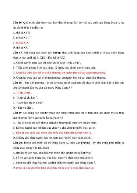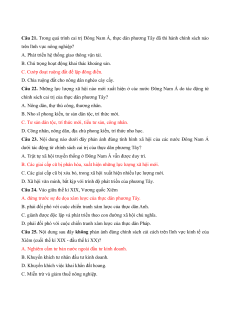 Câu 20. Trong quá trình cai trị Đông Nam Á, thực dân phương Tây chú trọng phát triển hệ