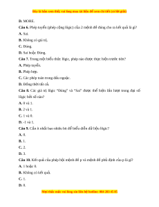 Đây là bản xem th , vu ử i lòng mua tài li u ệ đ xe ể m chi ti t (c ế ó l i ờ gi i ả ) D. MORE. Câu 6. Phép tuy n ( ể phép c ng ộ lôgic) c a ủ 2 m nh đ ệ đúng cho r ề a k t ế qu l ả à gì? A. Sai.
