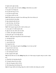 Câu 14. Nguồn gây ô nhiễm môi trường nước ngọt trên diện rộng chủ yếu hiện nay ở nước ta là do
