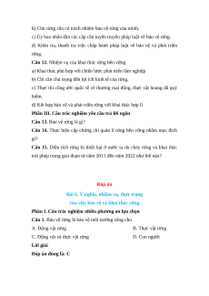 Câu 11. Nhiệm vụ bảo vệ rừng bền vững