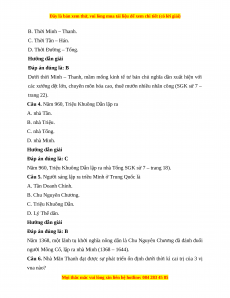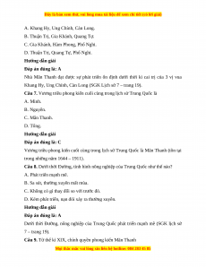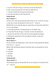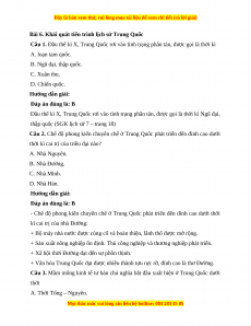 Câu 1. Đầu thế kỉ X, Trung Quốc rơi vào tình trạng phân tán, được gọi là thời kì A. loạn tam quốc. B. Ngũ đại, thập quốc. C. Xuân thu. D. Chiến quốc. Hướng dẫn giải: Đáp án đúng là: B