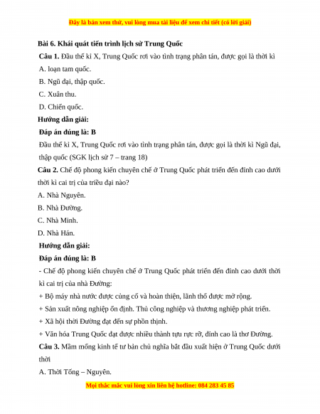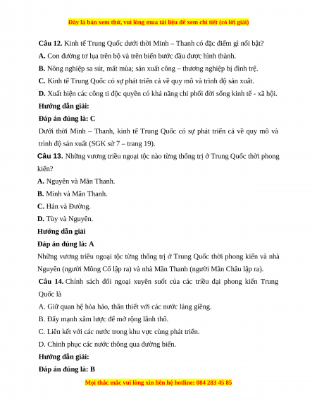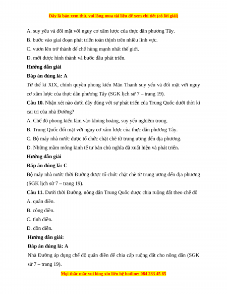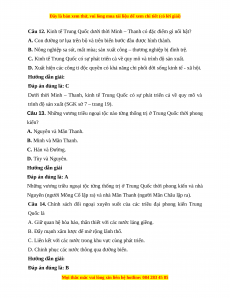 Câu 10. Nhận xét nào dưới đây đúng với sự phát triển của Trung Quốc dưới thời kì