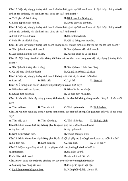 Câu 12: Việc xây dựng ý tưởng kinh doanh rất cần thiết, giúp người kinh doanh xác định được những vấn đề