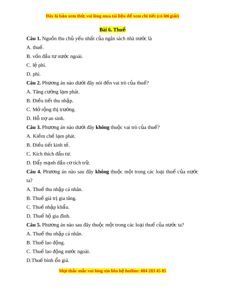 Đây là bản xem th , vu ử i lòng mua tài li u ệ đ xe ể m chi ti t (c ế ó l i ờ gi i ả ) Bài 6. Thuế