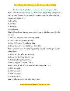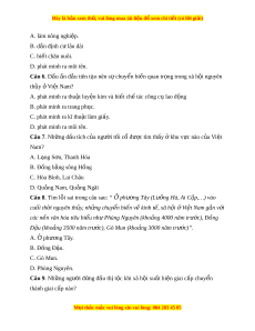 D. Phùng Nguyên, Sa Huỳnh, Gò Mun. Câu 4. Cư dân B ở c B ắ ộ Việt Nam bi t ế t i ớ đ đ ồ ng t ồ ừ khi nào? A. 2000 năm trư c. ớ B. 3000 năm trư c. ớ C. 4000 năm trư c. ớ D. 5000 năm trư c. ớ Câu 5. Nh ng ữ làng xóm xu t ấ hi n ệ ở Việt Nam? M i ọ thắc m c